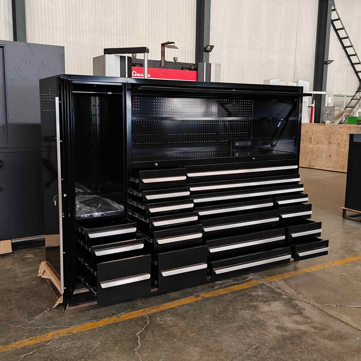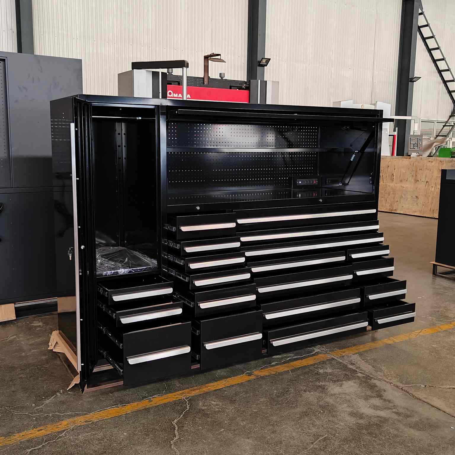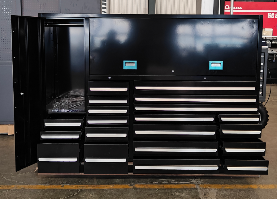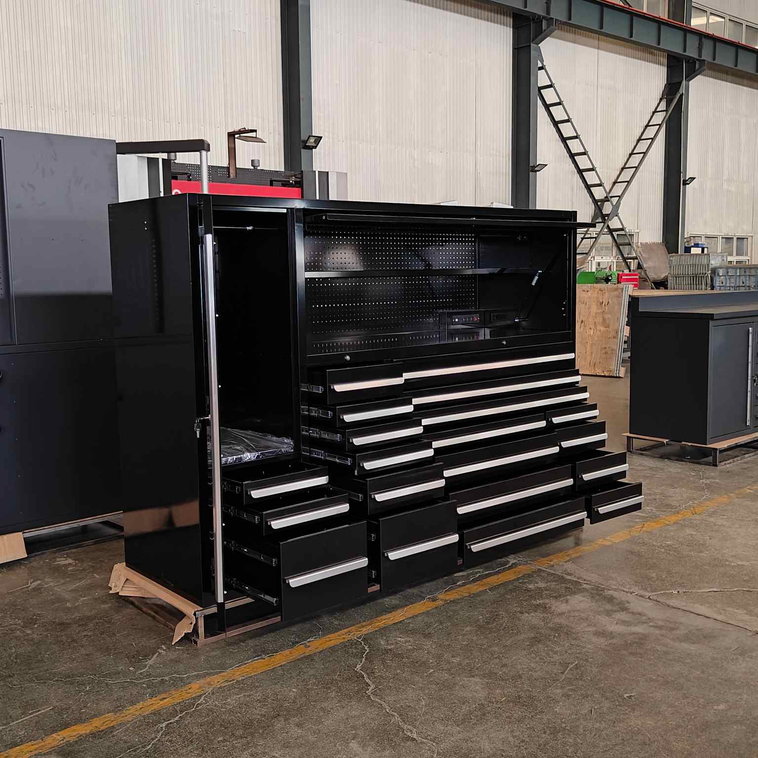 Cyjy'nin siyah çok işlevli alet kabini garaj çalışma odalarında, evlerde ve tamir atölyelerinde kullanılabilir ve alet rafları, güç soketleri ve depolama çekmeceleri ile donatılmıştır. Cyjy'nin siyah çok işlevli takım dolabı fabrika atölyesi için kolaylık sağladı.