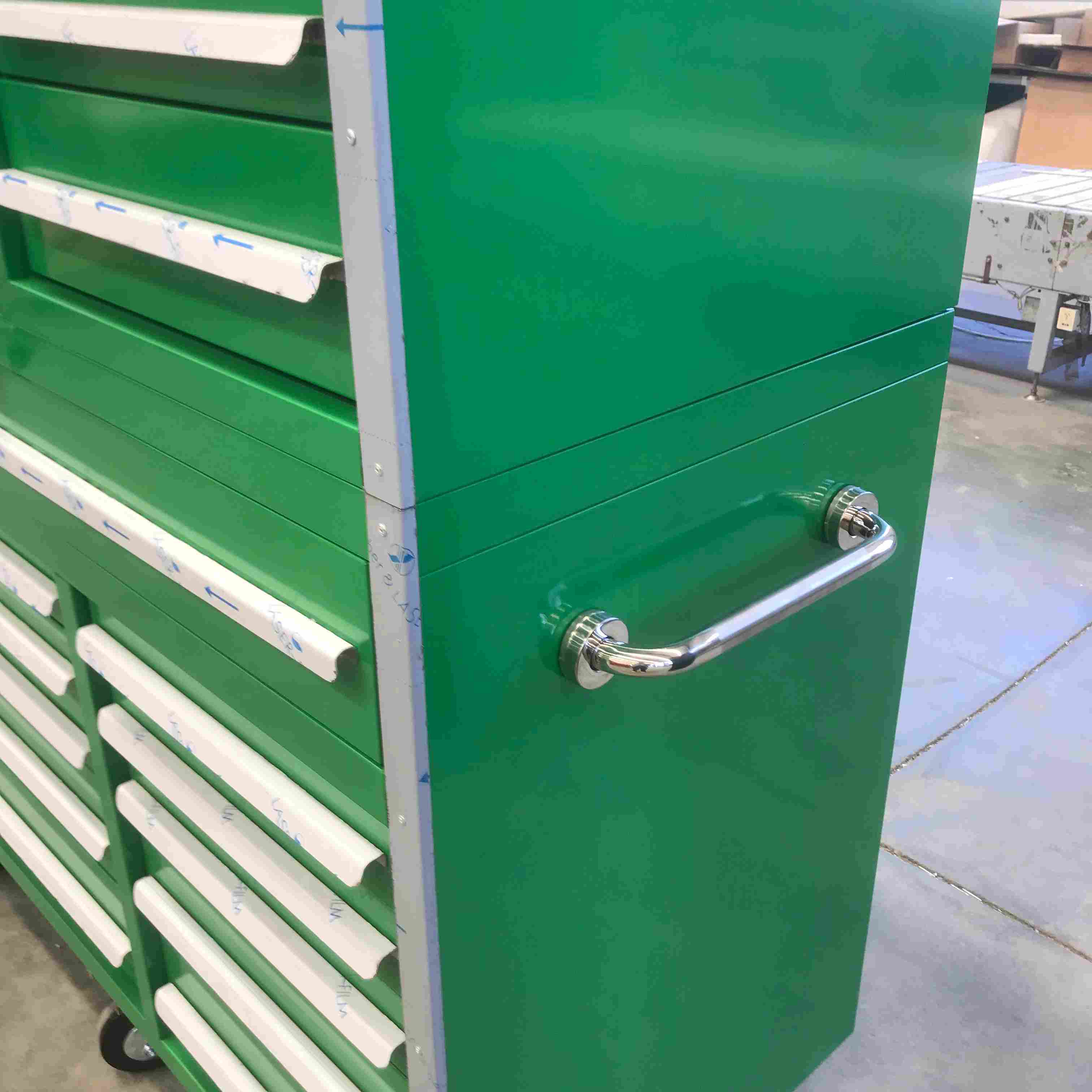 Soğuk haddelenmiş Rolley depolama dolabı, endüstriyel, atölyeler ve evdeki el aletlerini, elektrikli aletleri, mekanik yedek parçaları ve küçük ekipmanları depolamak için kullanılır. Yüksek yük kapasitesi ve mobil tasarım, işçilerin farklı iş istasyonlarındaki ürünlere kolayca erişmelerini sağlar.