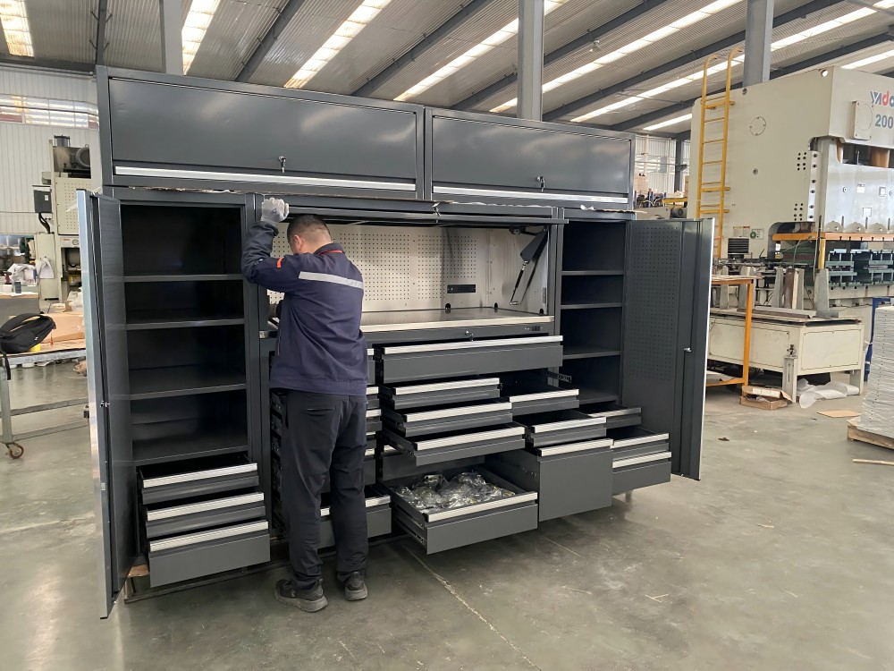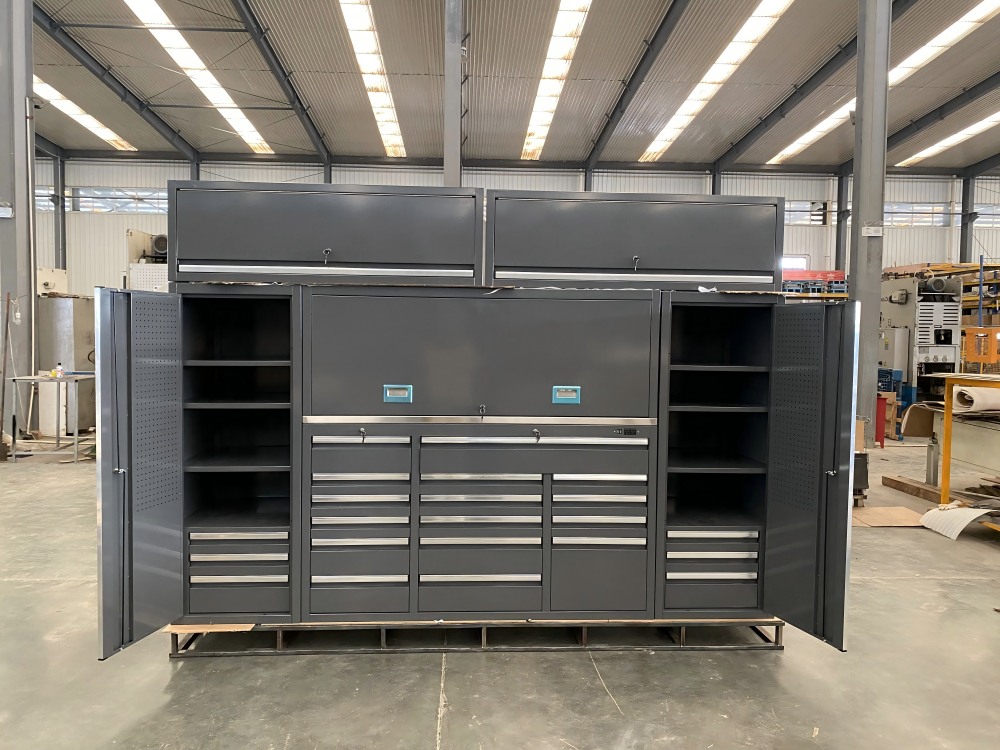 Yeni tasarım garaj dolapları, müşterilerimiz için Cyjy tarafından tasarlanan yeni dolaplardır. Yeni tasarım garaj dolaplarının ana çerçevesi, 150kg'lık tek katmanlı yük taşıma kapasitesine sahip 1,5 mm soğuk algınlığı çelik plakadan yapılmıştır. Yüzey, korozyon direncini% 40 artıran ve nemli ortamlar için uygun olan elektrostatik püskürtme ile işlenir.