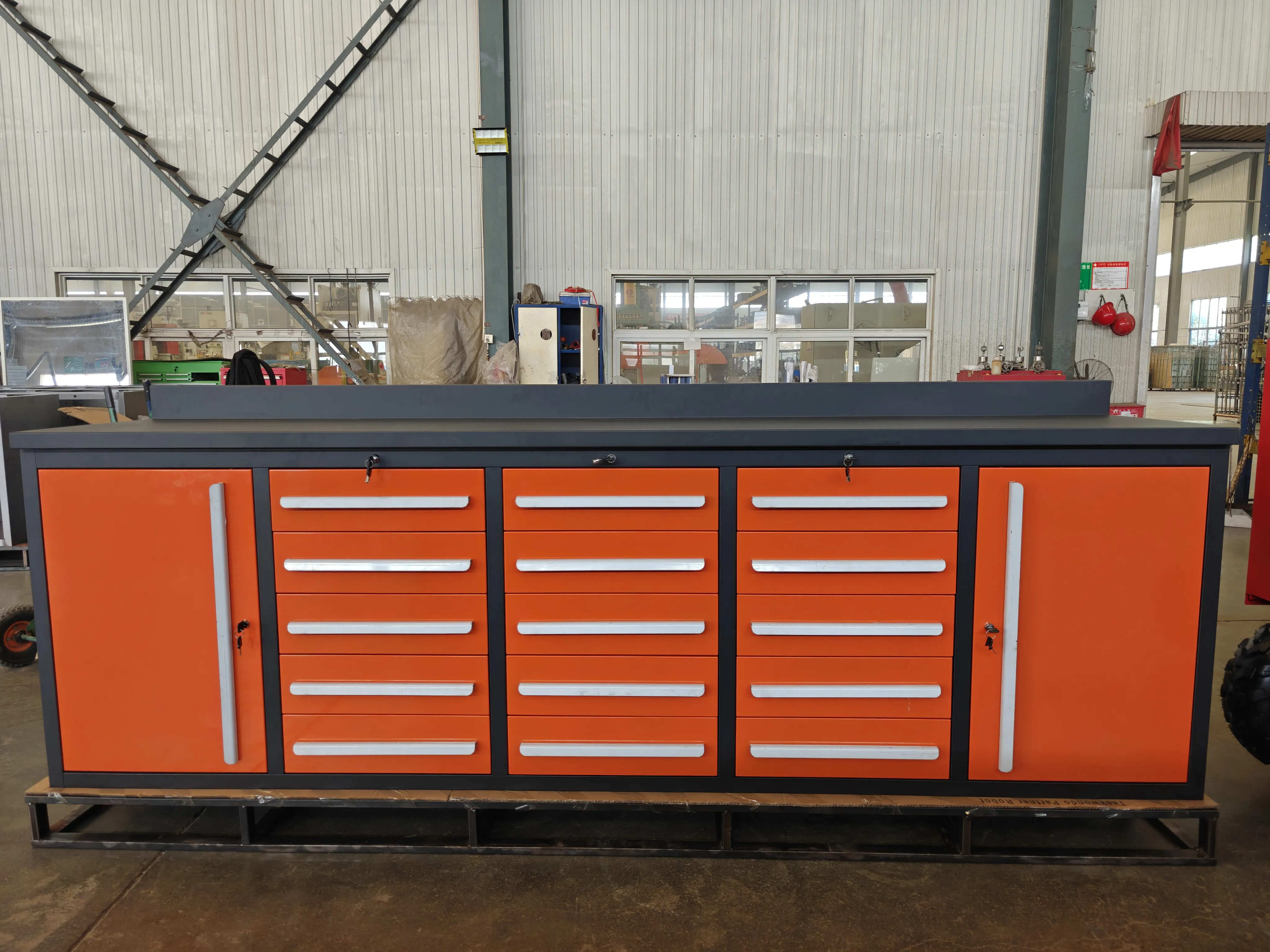 Dolabın üstü, alet dolabının işlevini genişletmek için yeşil çizgili kauçuk, kenar, çizim tahtası, hareketli arka çekmeci, kare delik asma tahtası veya panjur asma tahtası ile donatılabilir.