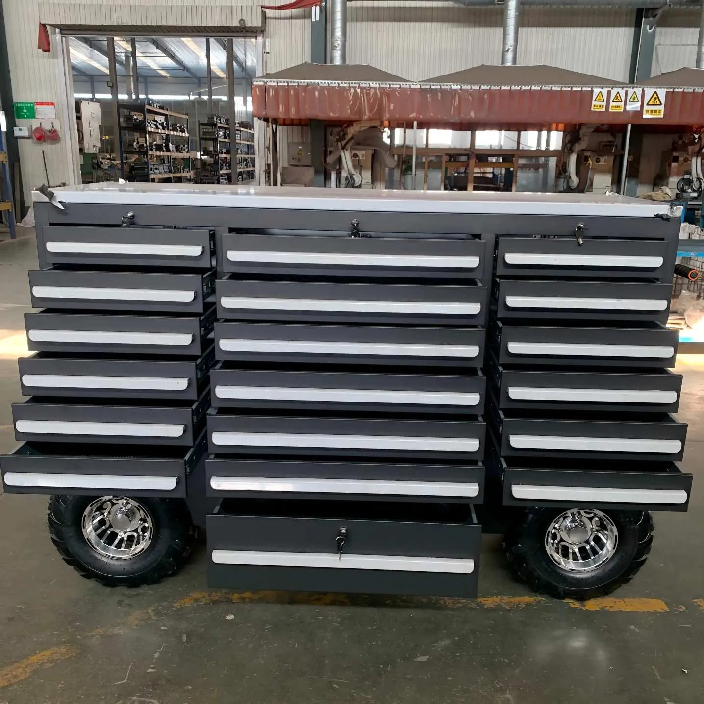 Güvenlik ve güvenilirlik: Çekmeceler, takım güvenliğini sağlamak ve kaybı veya yetkisiz kullanımı önlemek için kilitlerle donatılmıştır. İçerideki kayma önleyici ped tasarımı, hareketin hareket sırasında düşmesini ve hasar görmesini önler.