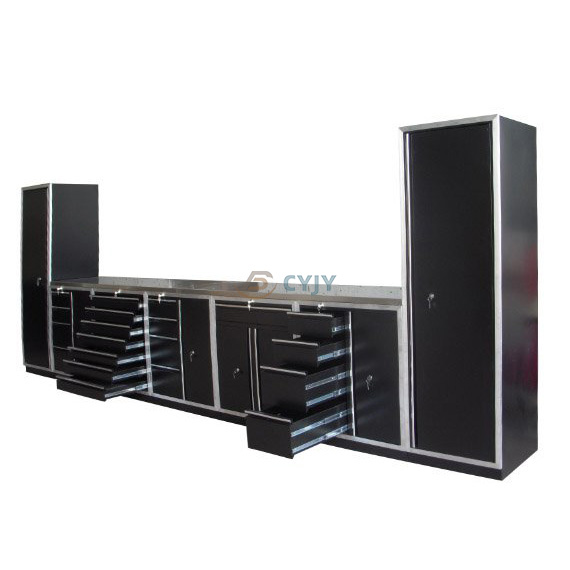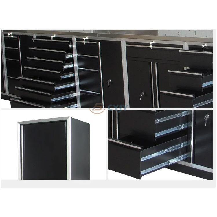 Özelleştirilmiş garaj dolabı üreticisi CYJY, damgalı ağır metal garaj dolaplarını gururla piyasaya sürüyor. Garaj eşyalarınızı düzenlemek ve depolamak için nihai çözümdür. Bu dolap seti, garajında veya atölyesinde ek depolama alanına ihtiyaç duyan herkes için mükemmeldir. Bu dolap setinin en önemli satış noktalarından biri, kilitli çelik bilyalı ray kızaklarıdır.